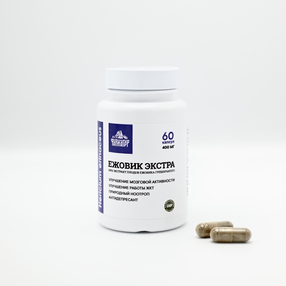 1 капсула содержит 400мг водорастворимого экстракта плодовых тел Ежовика гребенчатого.
